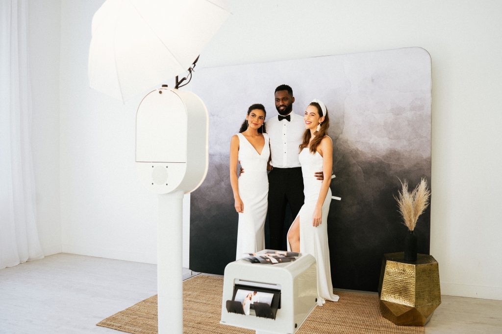 The Studio Booth – A professional setup with premium lighting and prints for high-quality, glamorous shots.